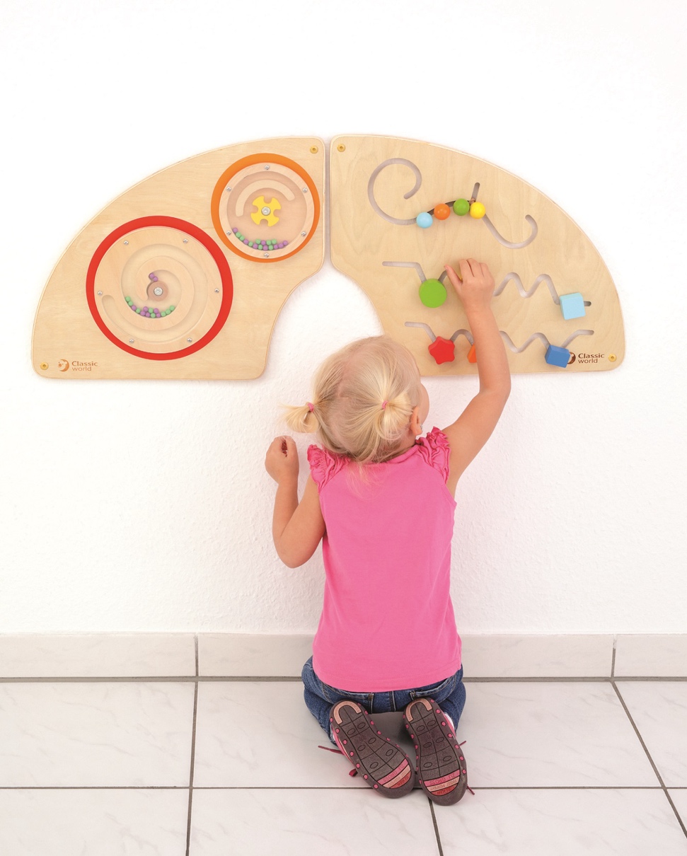 - Nos grands jeux muraux, dotés d’une fixation murale solide, permettent d’éviter bien des risques : pas de chute potentielle d’élément, de jeu qui pourrait basculer. Un aspect sécuritaire qui n’est pas des moindres !