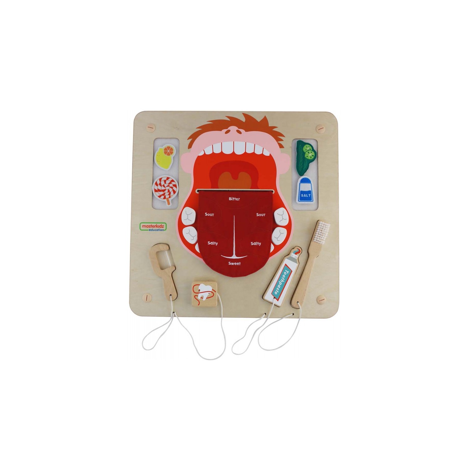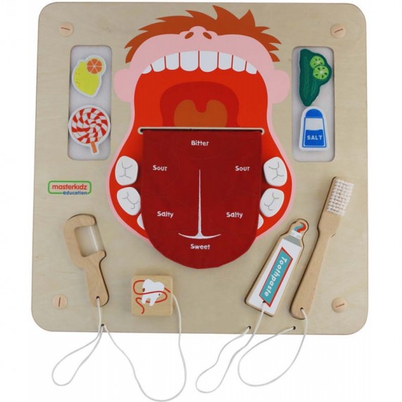 Ce jeu mural en bois, destiné principalement aux salles d'attente des dentistes et orthodontistes, aborde le thème de l'hygiène bucco-dentaire.