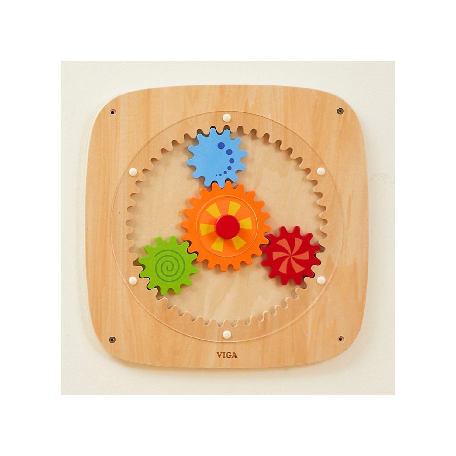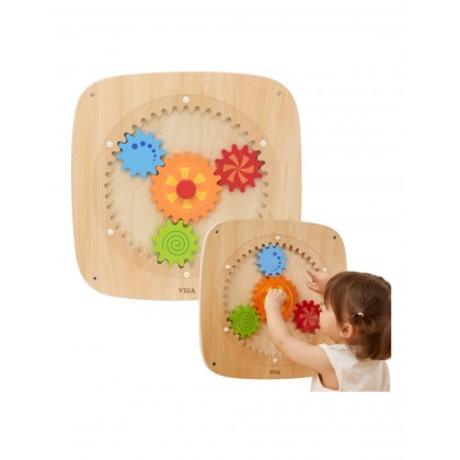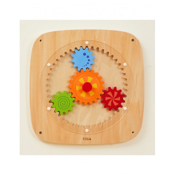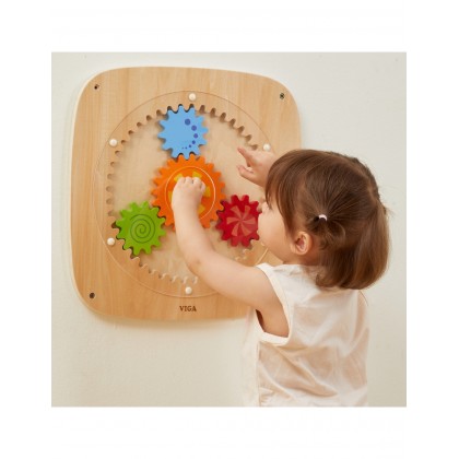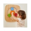 Des couleurs vives pour capter son attention, une jolie sensibilisation au système d'engrenage, un matériau robuste... autant d'atouts pour ce joli jeu mural !