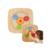 L'enfant s'amusera à faire tourner inlassablement les roues dentées à l'aide du gros bouton central afin de contemple le mouvement de rotation de ces quatre roues.