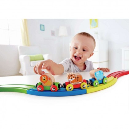 Petit train magnétique en bois composé de six pièces (trois wagons et trois animaux de la jungle). Ce train en bois est compatible avec la Table multi-activités Train proposée par L'îlot éducatif. Plus de détails expand_more